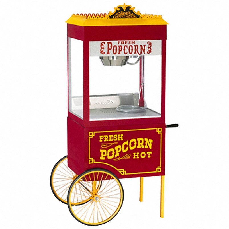 Cretors small concession poppers are built with sturdy welded stainless steel frames, stainless steel or nickel plated all steel kettles that will not pit or corrode. The clean-in-place kettle with lift-up lid makes cleaning a snap. The machines all have a red powder coated top that resists scratching. Heating features include an interior heat lamp and heated corn deck to keep popcorn warm and crisp.