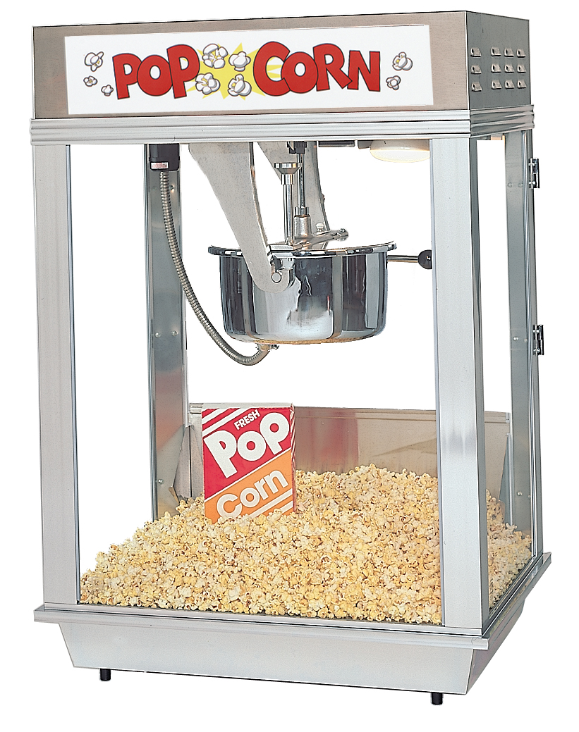 The Deluxe Citation Popcorn Machine from Gold Medal features a 14 oz. Unimaxx kettle for commercial size loads of delicious buttery snacks. With a forced air popcorn crisping system and Big Eye electronic heat control system this machine maintains freshness and a warm temperature. Attractive white dome offers a clean and classic look.