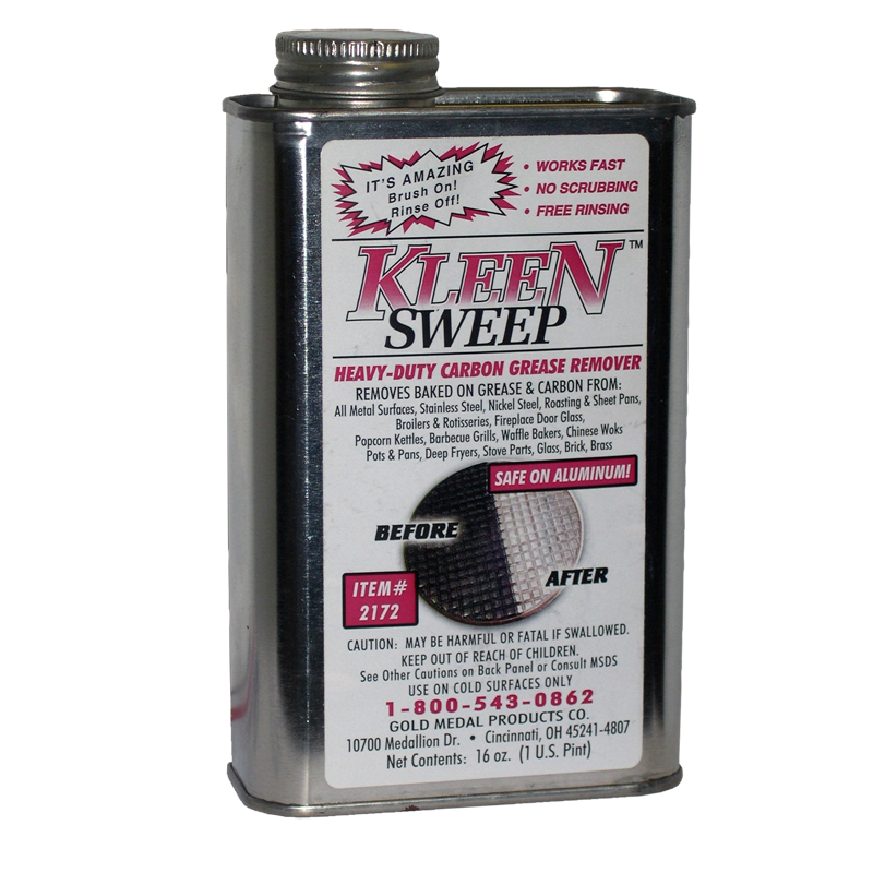 Kleen Sweep Heavy Duty Carbon Cleaner is the number one brand in concession carbon cleaners! Easily softens & desolves Carbon build-up on grills, kettles, and other cooking devices. Should NOT be used on painted enamel surfaces, plexiglass or Plastic. Sold individually