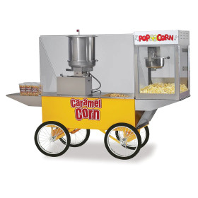 Pop and display! This Karamel Baby Two-In-One #2627 set up is an all-in-one cooking and selling system. The complete set-up includes all of the following: The Lobby Master® Wagon, Lexan® sneeze guard, built in Karamel Kool System, #2626 Karamel Baby® Cooker Mixer and #2552 12/14oz PopMaxx Value Popper. This is the perfect wagon to pop and sell your caramel corn at stadiums, festivals and more!