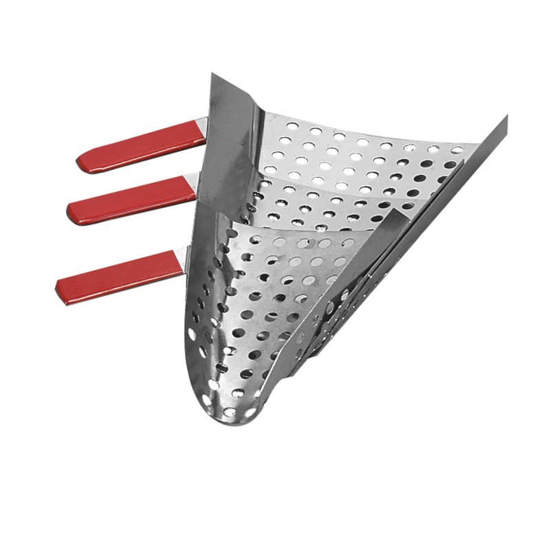 This Gold Medal Large Perforated Stainless Steel Scoop is a great popcorn scoop. It's an economical scoop designed for light duty. Left Handed