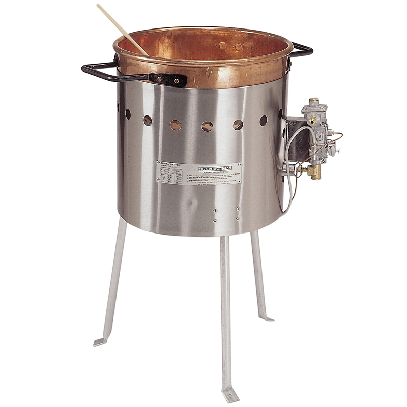Gold Medal Open Kettle Electric Caramel Corn Stove. It takes about 35-40 minutes to make a 5 gallon batch with the aluminum kettle. This unit is powered by 220 VAC @ 2600 Watts. Mixing Paddle, GM-2093, Sold Seperately. Pricing for this item does NOT INCLUDE the kettle and it must be purchased separately. Please select item GM-2082 for an Aluminum Kettle or GM-2081 for a Copper Kettle. Yields approx. 2 batches per hour. Kettle will reach temps to 425 degrees.