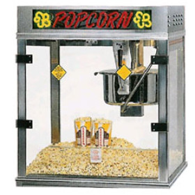 Astro Pop presents this enormous 32 oz Pop-O-Gold popcorn machine. Great for high volume locations such as arenas, movie theaters and fairs. The all welded stainless steel upper cabinet provides strength on this popcorn machine. Comes already wired for an optional oil delivery system. Oil Pump not included. Order either the Accumeter Oil Pump system (#2114) or the Bag in a Box (#2257H) pump. This model is designed for the front counter with the lighted sign on the operators side. Features the "Big Eye" Heat Control system which eliminates thermostat problems and provides the operator with both a visual light and a buzzer to alert you when it is time to dump the kettle.