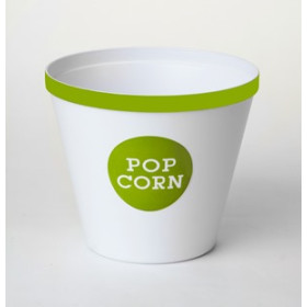 These lime green color rimmed buckets that are big enough to hold 6 quarts of popcorn! There is an insert in the bottom of the bucket keeping the unpopped kernels separate - from the delicious popcorn you are about to enjoy. You will be serving popcorn - just like at the movies. Large plastic bucket is 9" across the top of bucket and 8" tall.