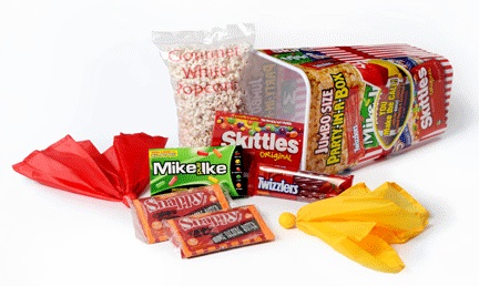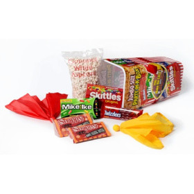 Features a Coach RED Challenge flag and an Officials YELLOW penalty flag,....plus buttery microwave popcorn, big bag of pre popped popcorn, movie sized Skittles, Mike & Ike's, and don't forget the Twizzlers.