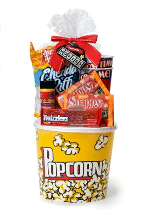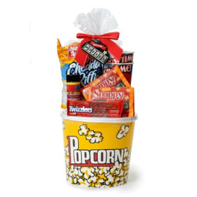 This ready to give JUMBO sized gift set comes wrapped in cello with a bow and gift tag! Standing over 20 inches tall - included with the jumbo sized serving Popcorn tub are 2 Movie time drink cups, Twizzlers, Pretzels, 2 bags of microwave popcorn, movie theater Skittles, and fun size Gobstoppers. An excellent gift item with high perceived value to make any gift giver look great!